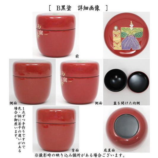 【茶器/茶道具 なつめ(お薄器) ひな祭り】 中棗 立雛 朱塗り又は黒塗り 宮田宗景作 2種類より選択 (桃の節句・ひなまつり・雛祭り)