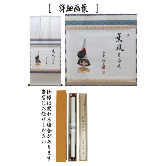 【茶器/茶道具 掛軸(掛け軸) 端午の節句】 横軸画賛 薫風自南来 福代洋道筆 兜の画(加藤清正公の兜)
