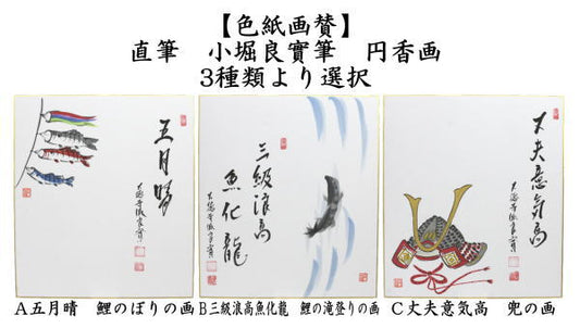 【茶器/茶道具 色紙画賛】 直筆 たまや 橋に花火の画又は涼一味 酸漿の画(ほおずき) 小堀良實筆 円香画