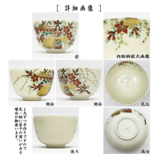 【茶器/茶道具 抹茶茶碗 ひな祭り】 仁清写し 立雛 山岡善高作 (桃の節句・ひなまつり・雛祭り・桃の花)