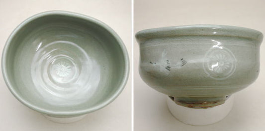 【茶器/茶道具 抹茶茶碗】 青磁釉 白菊 今岡都作