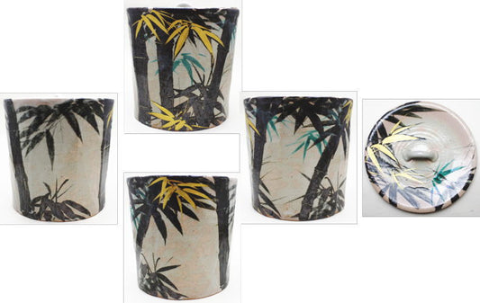 【茶器/茶道具 水指(水差し)】 仁清写し 竹林 井川和夫作(燦光窯) (共蓋)