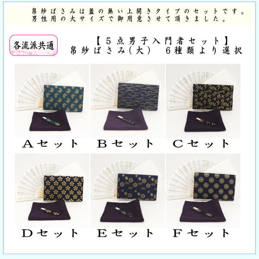 〇【茶器/茶道具 茶道初心者用 男子用/男性用】 5点男子入門者セット (二折れ帛紗ばさみ(外入) 大 クリアケース入物付) (各流派)