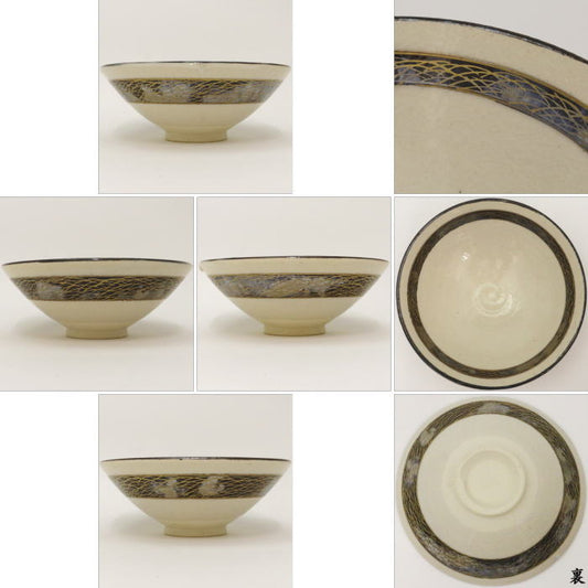 【茶器/茶道具 抹茶茶碗】 平茶碗 白地に武蔵野 杉田祥平作(清閑寺窯)