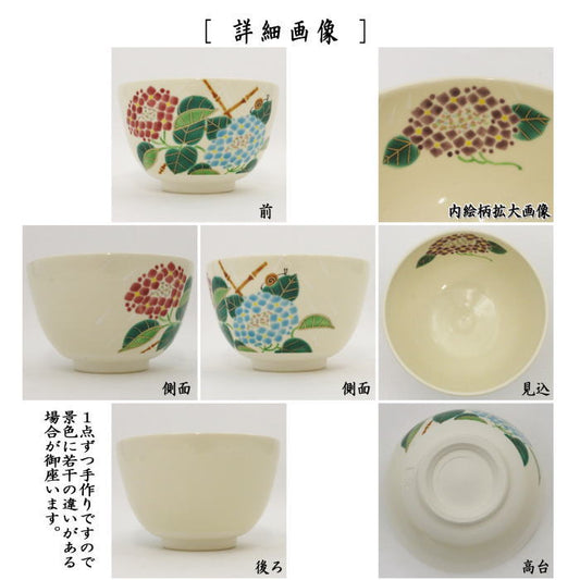 〇【茶器/茶道具 抹茶茶碗】 色絵茶碗 紫陽花に蝸牛 加藤起楽作