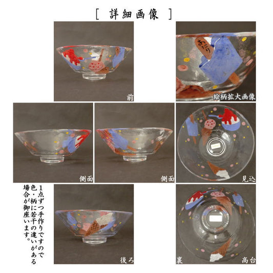 【茶器/茶道具 ガラス抹茶茶碗(硝子抹茶茶碗)】 ガラス(硝子) 義山(ギヤマン) 平茶碗 夏のビーチ 水出宋絢作 超耐熱硝子 (ガラス茶碗・硝子茶碗・ペンギン・すいか割り・スイカ割り)