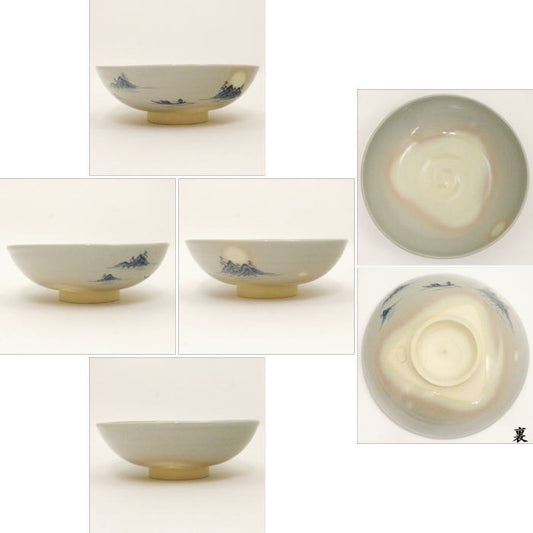 【茶器/茶道具 抹茶茶碗】 平茶碗 尾戸焼き 山水 土居庄次作