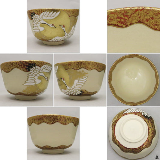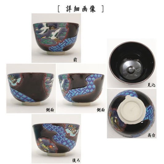 【茶器 茶道具 抹茶茶碗 慶祝/御題「友」】 慶祝茶碗 仁清写し 旭光に双鶴茶碗 中村源水作(東福窯) 【干支「卯」 御題「友」】