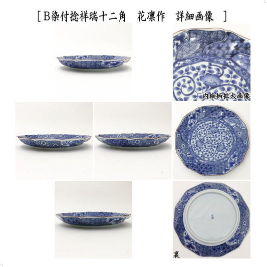 【茶器/茶道具 菓子器】 菓子鉢 赤絵 吉祥文 風花作又は染付捻祥瑞十二角 花凛作
