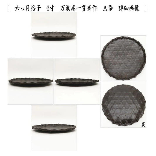 【茶器/茶道具 菓子器】 干菓子器 一貫張り 六っ目格子 6寸 万満庵一貫斎作 染又は浅 文字和紙