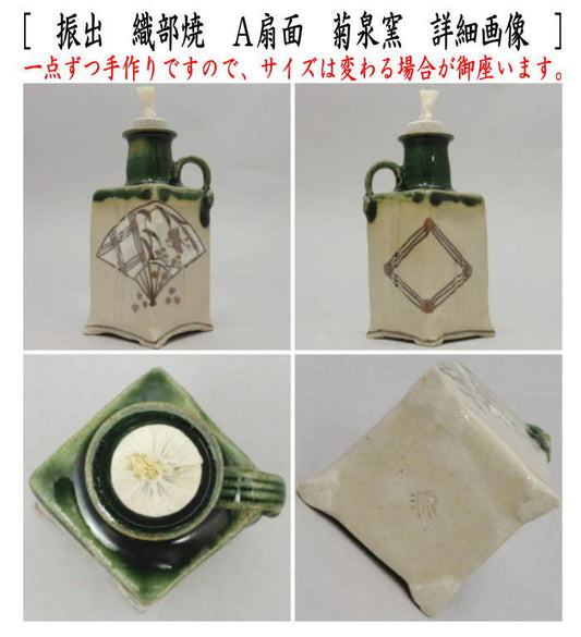 〇【茶器/茶道具 菓子器】 干菓子器 振出 織部焼き 扇面又は亀甲又は七宝 菊泉窯