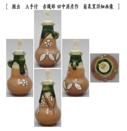 〇【茶器/茶道具 菓子器】 干菓子器 振出 手付 赤織部又は弥七田織部又は瓢 田中源彦作 菊泉窯
