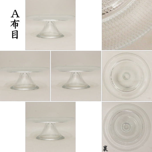 【茶器/茶道具 菓子器】 ガラス(硝子) 菓子鉢 脚付 布目又は市松
