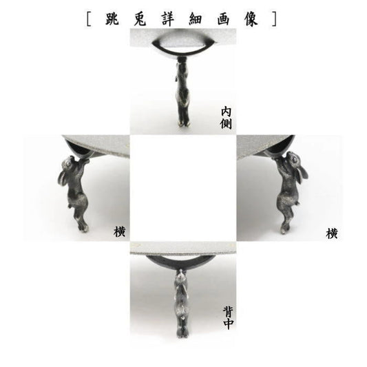 【茶器/茶道具 菓子器】 干菓子器 唐銅(唐金) 跳兎(兎脚)唐草彫 銀色 金谷宗林作 6.5寸 usagi 兎 Rabbit rabbit hare bunn ノウサギ ぴょんぴょん lapin