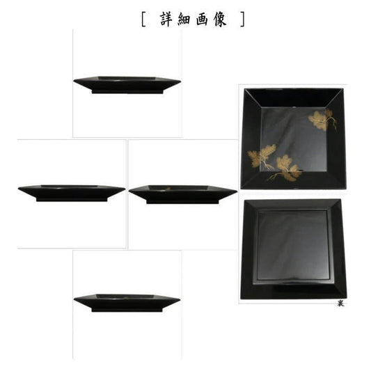 【茶器/茶道具 菓子器】 干菓子器(干菓子盆) 四方盆 真塗り 根引松蒔絵 吉田華正作