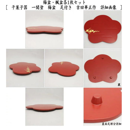 【茶器/茶道具 菓子器】 干菓子器(干菓子盆) 一閑塗り 梅楓盆 一双 足付き 吉田華正作