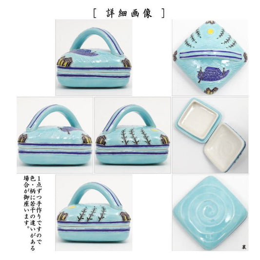 【茶器/茶道具 香合】 淡青交趾 隅田川 中村翠嵐作