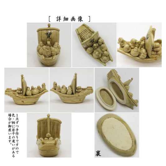 【茶器/茶道具 香合】 益子焼き 黄瀬戸 宝船 (七福神に宝船) 三武信家作