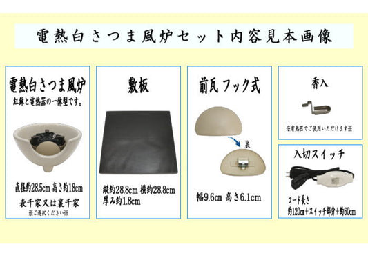 【茶器/茶道具 土風炉/紅鉢 電熱風炉】 電熱式 白さつま風炉(紅鉢型) 炭型ヒーター 敷板付 サンアイ(旧野々田式)