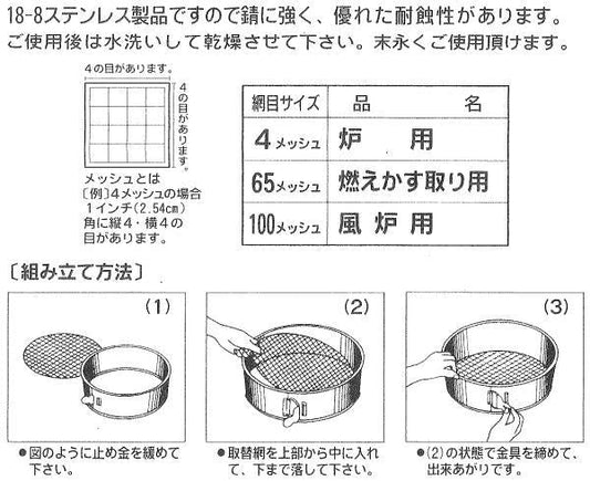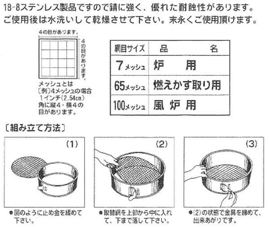 【茶器/茶道具 灰道具】 灰篩 網三枚組 ステンレス製 裏千家用
