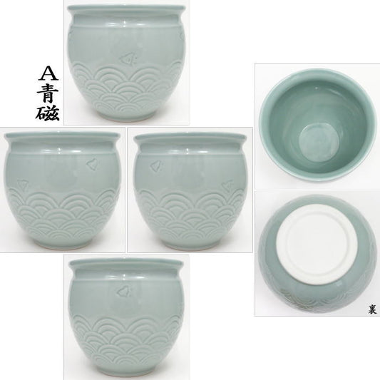 3種類青磁に変更【茶器/茶道具 水屋道具】 水屋瓶(水屋甕/水屋壷/水屋壺) 青磁(小)青海波千鳥又は(無し)雲鶴 大 木製割蓋付