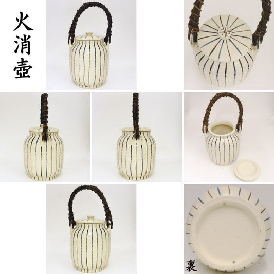 【茶器/茶道具 水屋道具】 火消壺(火消壷) 中 十草柄(木賊柄・とくさ柄) 耐熱瓦付