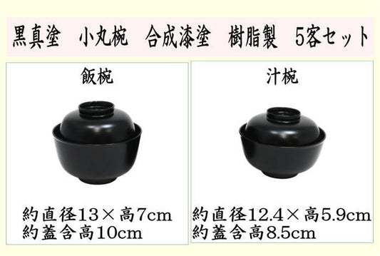 【茶器/茶道具 懐石道具(会席道具) 四つ椀】 黒真塗り 小丸椀(飯椀&汁椀) 合成漆塗り 樹脂製 5客セット