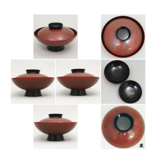 【懐石道具(会席道具) 四つ椀 汁椀】 吸物椀/煮物椀 輪島塗り 蒔絵 蓋裏鳥 5客セット 木製 北浜宗貴作