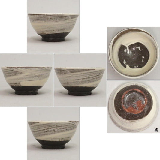 【懐石道具(会席道具) 盃】 引盃 わらび波 玄々斎好写し 5客セット 中村宗悦作 (引杯・引き盃・引き杯・杯・さかずき)