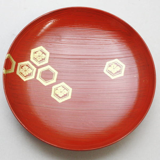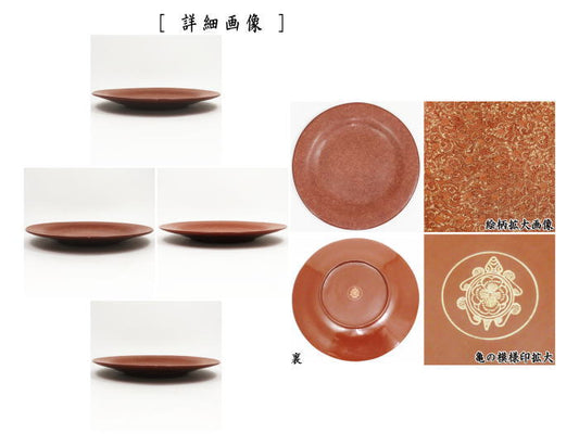 【懐石道具(会席道具)/菓子器】 丸盆 蒟醤塗り(きんま塗り) 唐草 亀の模様印