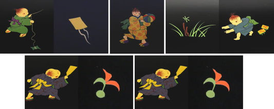 【中古】【茶器/茶道具 懐石道具(会席道具)/折敷】 懐石膳(会席盆)/点心盆 輪島塗り 絵替り 折敷 5枚セット 長方形