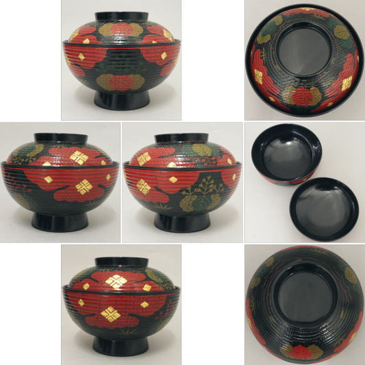 【茶器/茶道具 懐石道具(会席道具) 四つ椀】 煮物椀 掻合漆塗り 正法寺 5客セット 木製 (柿合わせ・柿合せ・柿合・掻き合せ・掻き合わせ・掻合わせ・掻合せ)