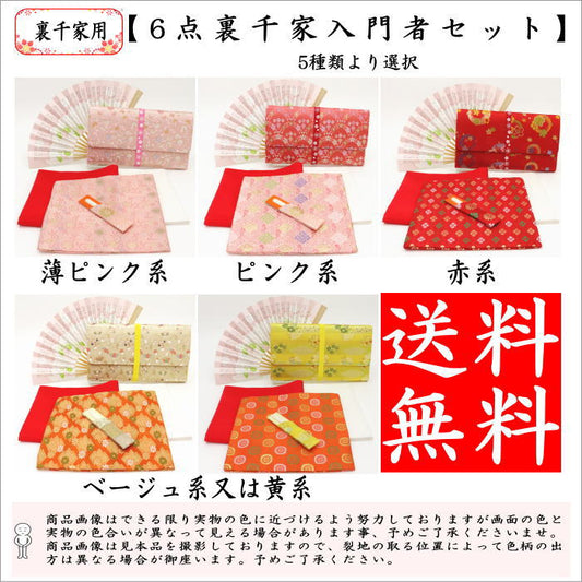 【茶器/茶道具セット 茶道初心者用】 リニューアル 送料無料 6点裏千家入門者上セット (ステンレス楊子) 薄ピンク系又はピンク系又は赤系又はベージュ系又は黄系