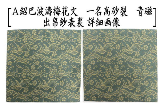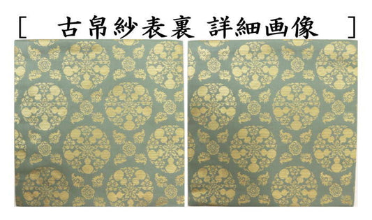 【茶器/茶道具 古帛紗】 正絹 名物山椒純子 北村徳斎製(北村徳斉製) 青磁色 (裂437) (古服紗・古袱紗・古ぶくさ・こぶくさ)