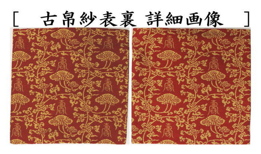 【茶器/茶道具 古帛紗】 正絹 紹巴織り 紹巴寿字入霊芝文 北村徳斎製(北村徳斉製) (赤地/裂347) (古服紗・古袱紗・古ふくさ)