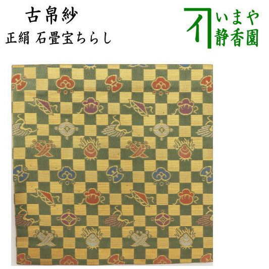 【茶器/茶道具 古帛紗】 正絹 石畳宝ちらし (古服紗・古袱紗・古ぶくさ・こぶくさ)