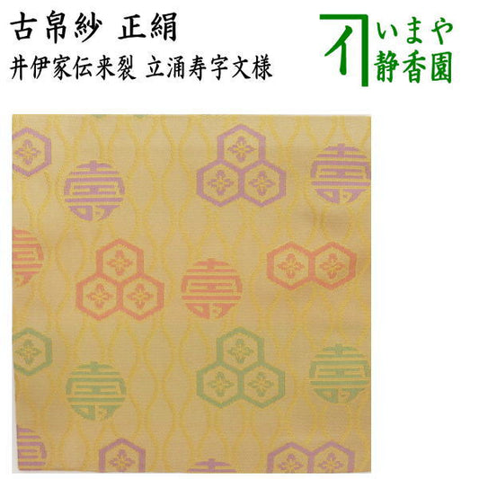 【茶器/茶道具 古帛紗】 正絹 井伊家伝来裂 立涌寿字文様 (古服紗・古袱紗・古ぶくさ・こぶくさ)