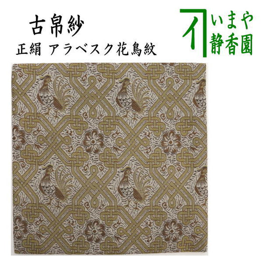 【茶器/茶道具 古帛紗】 正絹 アラベスク花鳥紋 (古服紗・古袱紗・古ぶくさ・こぶくさ)