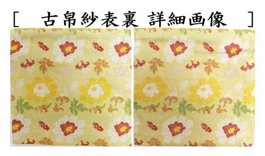 【茶器/茶道具 古帛紗】 正絹 黄蘗地銀?唐華文錦(きはくぢぎんらんからくさもんにしき) 北村徳斎製(北村徳斉製) (裂224) (古服紗・古袱紗・古ぶくさ・こぶくさ)
