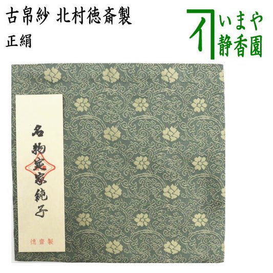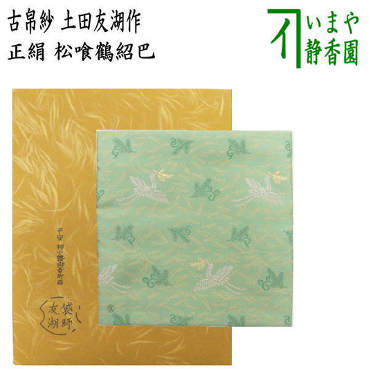 【茶器/茶道具 古帛紗】 唐物帛紗 紹巴織り 正絹 松喰鶴紹巴 緑 土田友湖作(千家十職 袋師) (古服紗・古袱紗・古ぶくさ・こぶくさ)