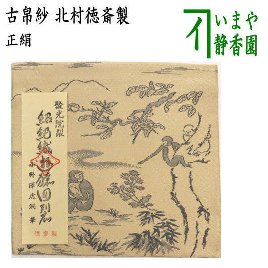 【茶器/茶道具 古帛紗 干支「申」】 唐物帛紗 聚光院裂 紹巴織遊猿図裂 小野澤虎洞筆 北村徳斎製(北村徳斉製) (古服紗・古袱紗・古ぶくさ・こぶくさ)