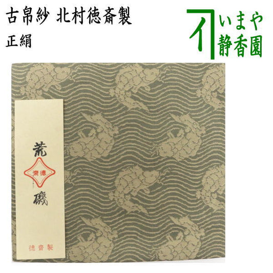 【茶器/茶道具 古帛紗】 正絹 荒磯 青磁 北村徳斎製(北村徳斉製) (古服紗・古袱紗・古ぶくさ・こぶくさ)