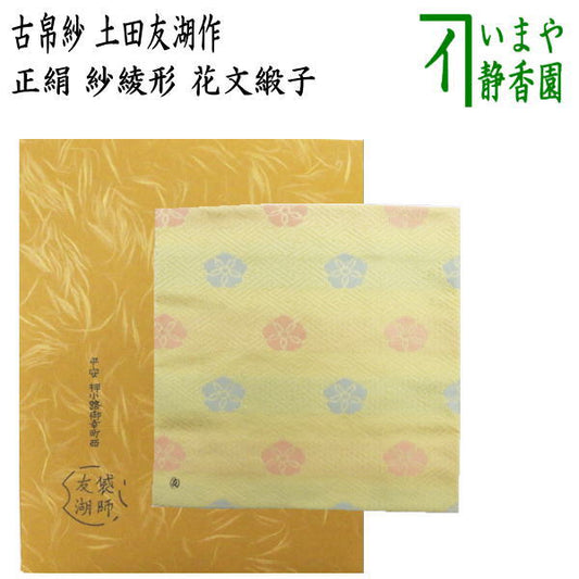 【茶器/茶道具 古帛紗】 正絹 紗綾形 花文緞子 土田友湖作(千家十職 袋師) (古服紗・古袱紗・古ふくさ)