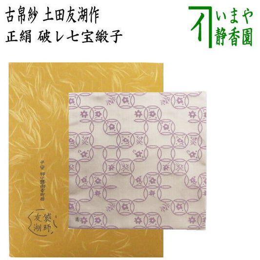 【茶器/茶道具 古帛紗】 正絹 破レ七宝緞子 土田友湖作(千家十職 袋師) (古服紗・古袱紗・古ぶくさ・こぶくさ)