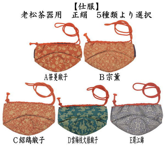 〇【茶器/茶道具 老松仕服(老松仕覆)】 老松茶器用 正絹 笹蔓緞子又は宗薫緞子又は紹鴎緞子又は雲梅枝文様又は蜀江錦 5種類より選択