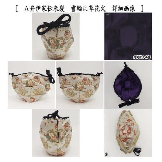 【茶器/茶道具 仕服(仕覆)】 天目茶碗仕服 正絹 井伊家伝来裂 雪輪に草花文 2種類より選択