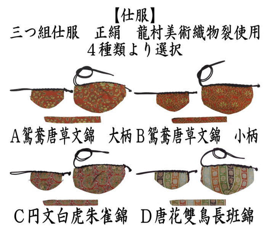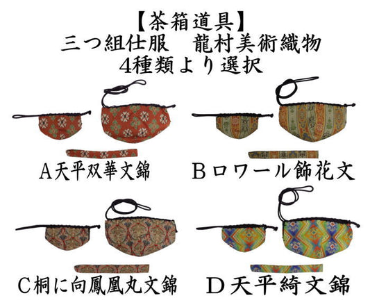 【茶器/茶道具 茶箱道具 仕服(仕覆)】 三つ組仕服 正絹 天平双華文錦又はロワール飾花文又は桐に向鳳凰丸文錦又は天平綺文錦 龍村美術織物裂使用