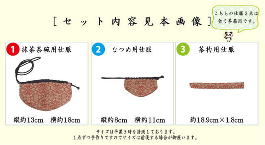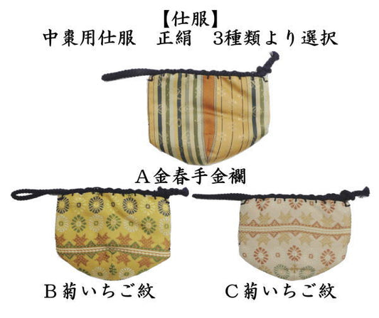 【茶器/茶道具 茶箱道具 仕服(仕覆)】 三つ組仕服 亡羊緞子又は三雲屋緞子又は遠州緞子 3種類より選択