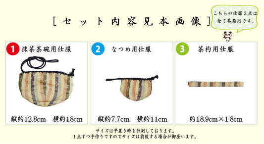 【茶器/茶道具 茶箱道具 仕服(仕覆)】 三つ組仕服 正絹 伊予簾(伊予すだれ) 3種類より選択