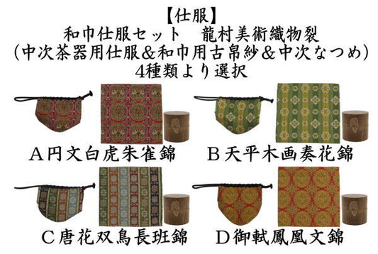 〇【茶器/茶道具 仕服(仕覆)】 中棗仕服 獅子狩文錦又はロワール飾花錦又は花文暈繝錦 龍村美術織物裂使用 3種類より選択